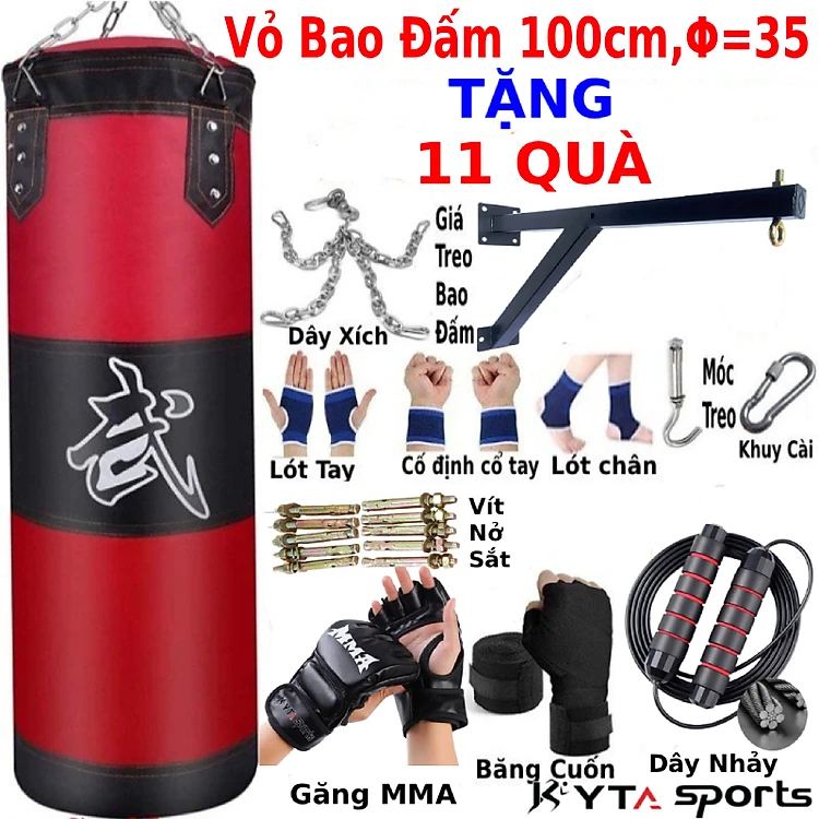 Vỏ Bao Đấm Cao Cấp 3 Lớp Siêu Bền, Trụ Đấm Bốc Treo - Mua 1 Bao tặng 7 phụ kiện đi kèm