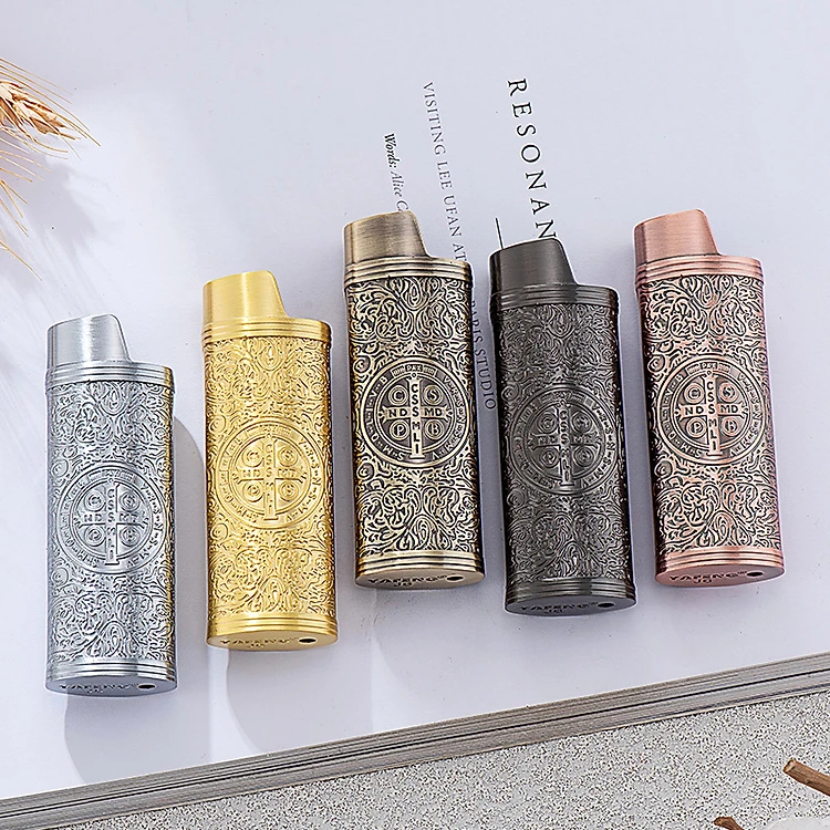 Vỏ Bật Lửa Bic J6 Bic Lớn Khắc Nổi Hình Thánh Giá Kim Loại