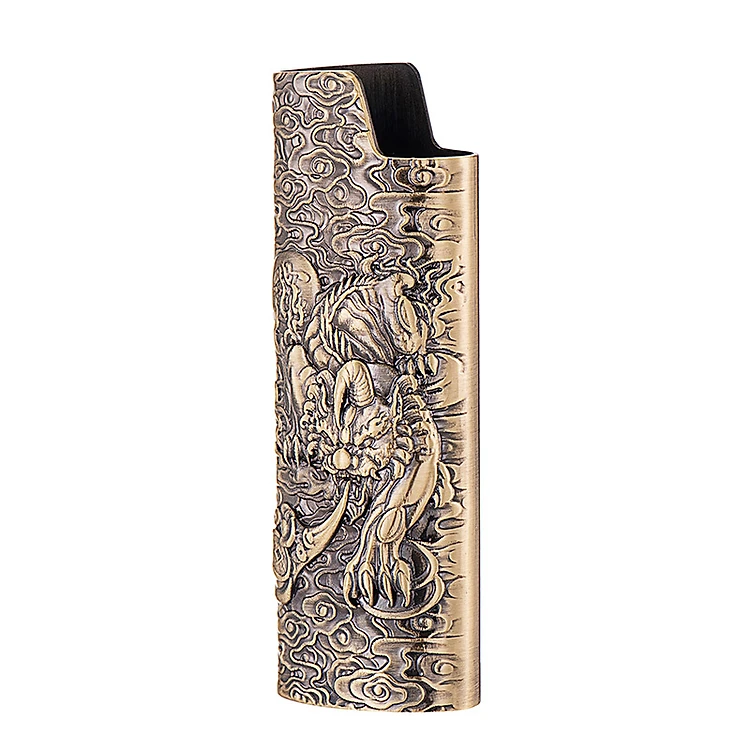 Vỏ Bật Lửa Bic J6 Bic Lớn Khắc Nổi Hình Tỳ Hưu Kim Loại 5 Màu