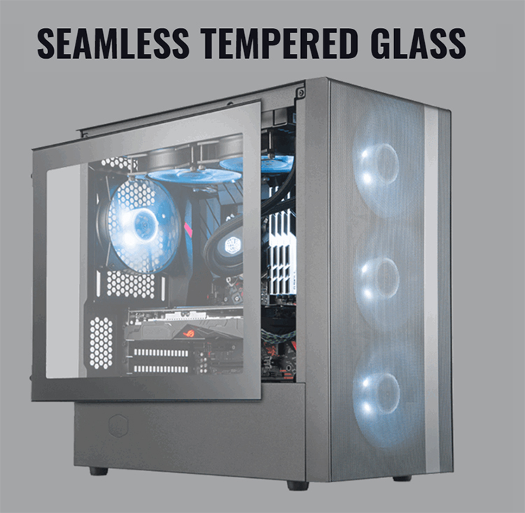 Đặc biệt, còn được trang bị tấm kính cường lực mặt hông được thiết kế để hòa quyện vào vỏ case Master NR400 một cách hoàn hảo nhất, với việc được bắt dính bằng ốc vít đảm bảo kính luôn chắc chắn.