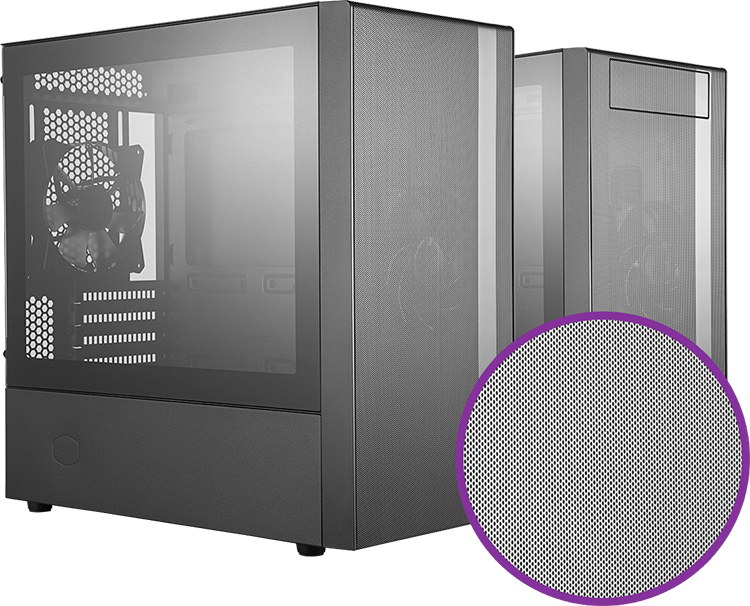 Vỏ Case Cooler Master NR400 được thiết kế tối giản hóa nhằm tập trung vào luồng khí vào ra và khả năng tản nhiệt. Cấu tạo lớp lưới dày mặt trước vừa đóng vai trò hút khí thông thoáng máy, vừa đóng vai trò lọc bụi cực kì hiệu quả.