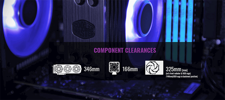 | CLEARANCE - PSU | 325mm (w/o front radiator & HDD cage), 140mm (HDD cage in backmost position) |