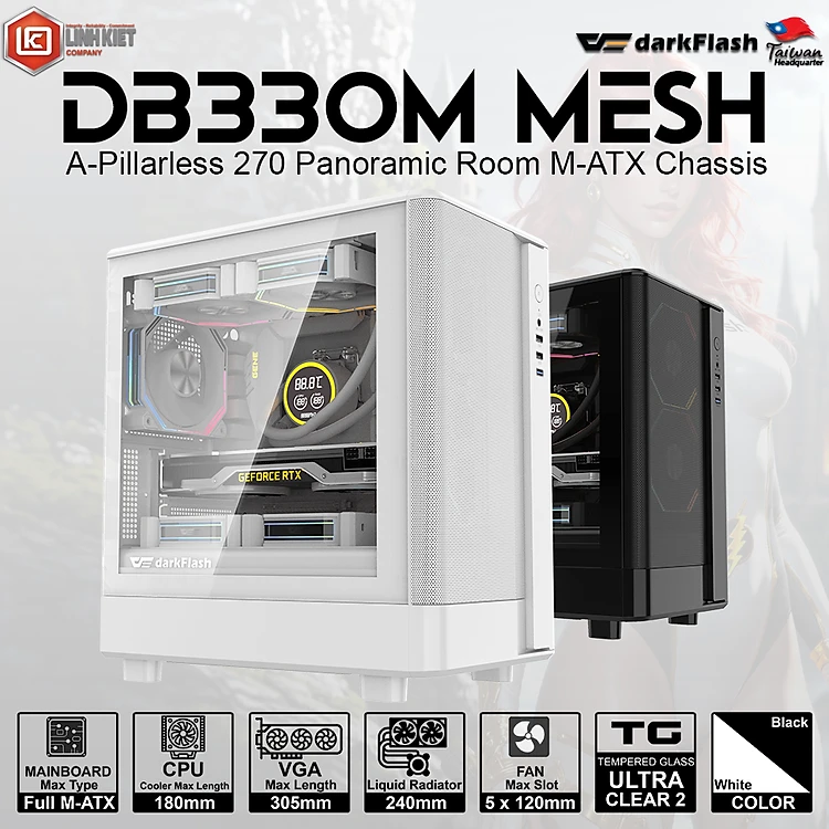 VỎ CASE MÁY TÍNH DARKFLASH DB330M MESH (Full M-ATX) - Hàng chính hãng