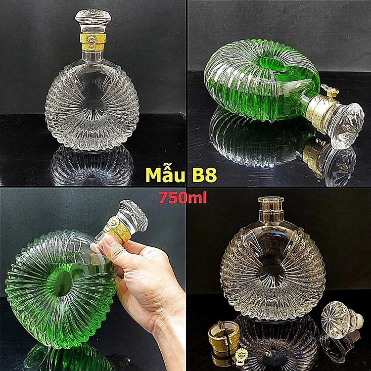 Vỏ chai rượu thủy tinh 750ml cao cấp mẫu xo đế vương – Chai thủy tinh đựng rượu - Bình đựng rượu thủy tinh sang trọng (mẫu B8)