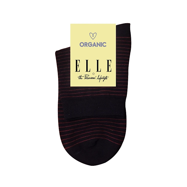 Vớ cổ cao nữ ELLE ELW03 - Cotton Organic - dệt trơn phối kẻ - Freesize - Hàng chính hãng