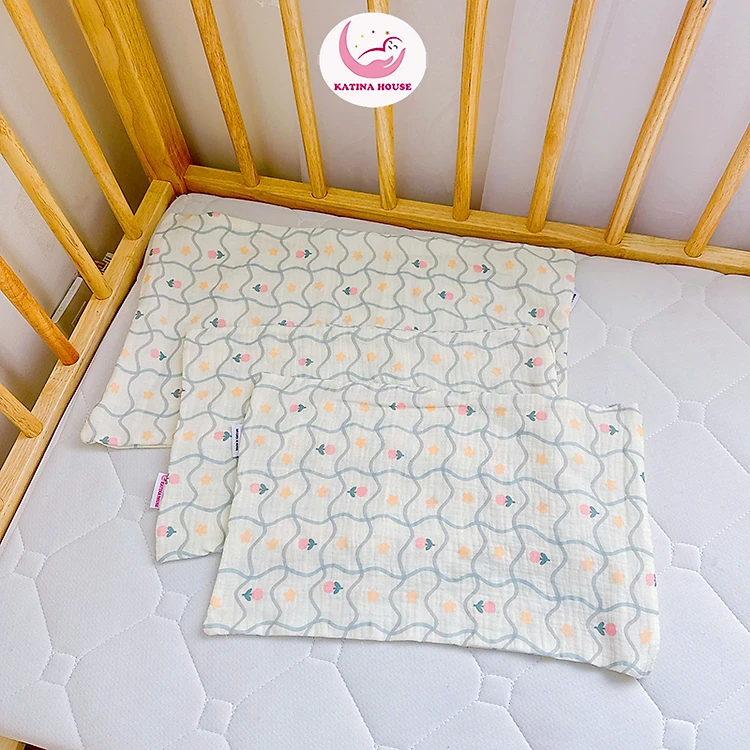 Vỏ gối nằm cho bé Katina House, vải muslin mềm nhẹ, thoáng mát, thấm hút siêu tốt