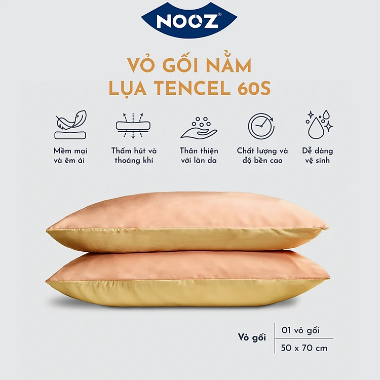 Vỏ Gối Nằm Lụa 60s NOOZ Bedding 50x70 Trơn Nhiều Màu Vải Mát Lạnh Thoáng Khí Bảo Vệ Làn Da
