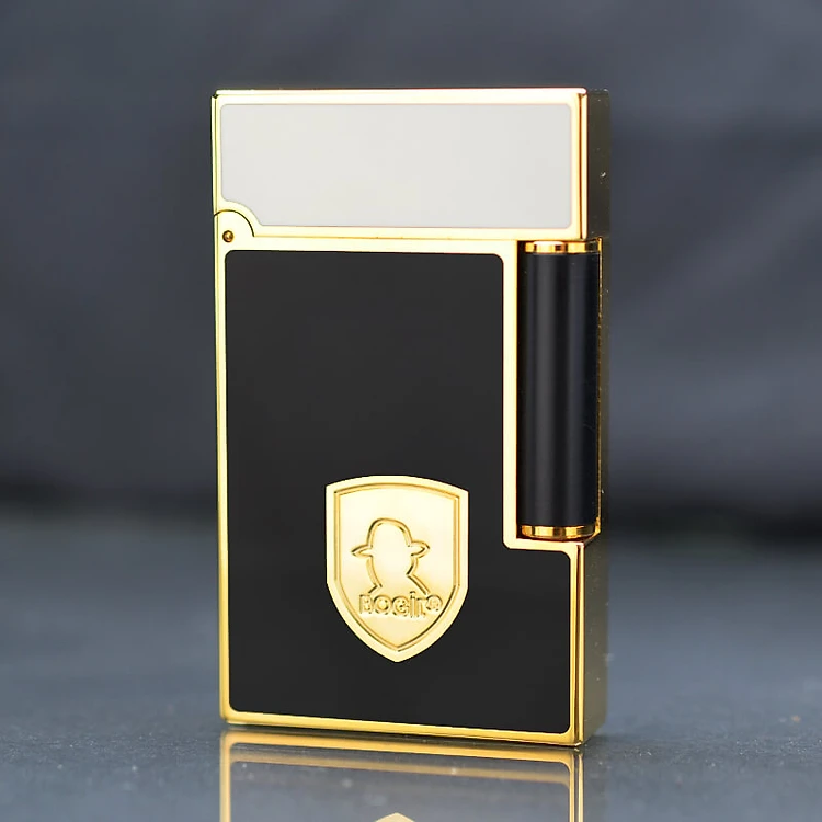 Vỏ hộp quẹt bật lửa ga đá sơn mài đen viền vàng D-199V