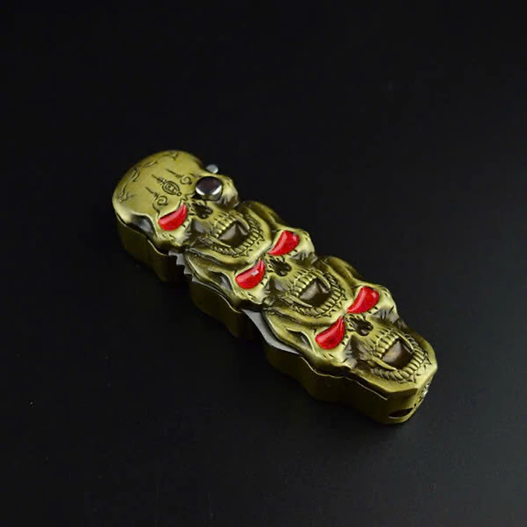 Vỏ hộp quẹt bật lửa khò 1 tia họa hình đầu lâu màu vàng