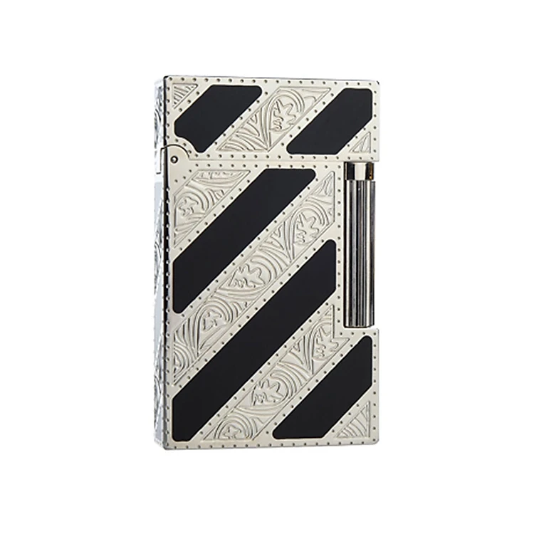 Vỏ Hột Quẹt Bật Lửa D upont D42T Họa Tiết Hoa Lá Sơn Mài Nền Đen Trắng Đối Nhau - Dùng Gas Đá Cao Cấp
