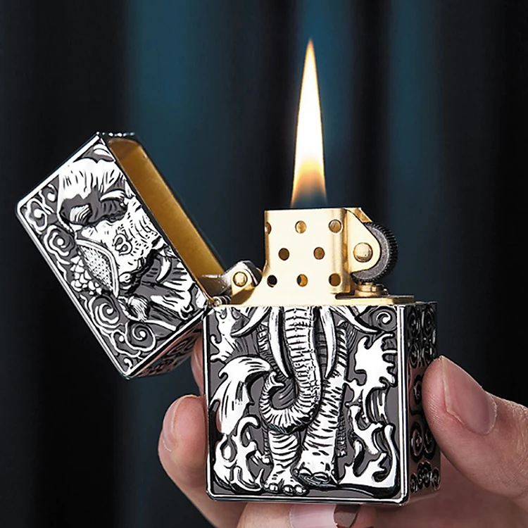 Vỏ Hột Quẹt Bật Lửa Đẹp Độc Lạ Z-KJ1015 Màu Vàng Cổ Họa Tiết Con Voi 3D Nổi Cực Đẹp
