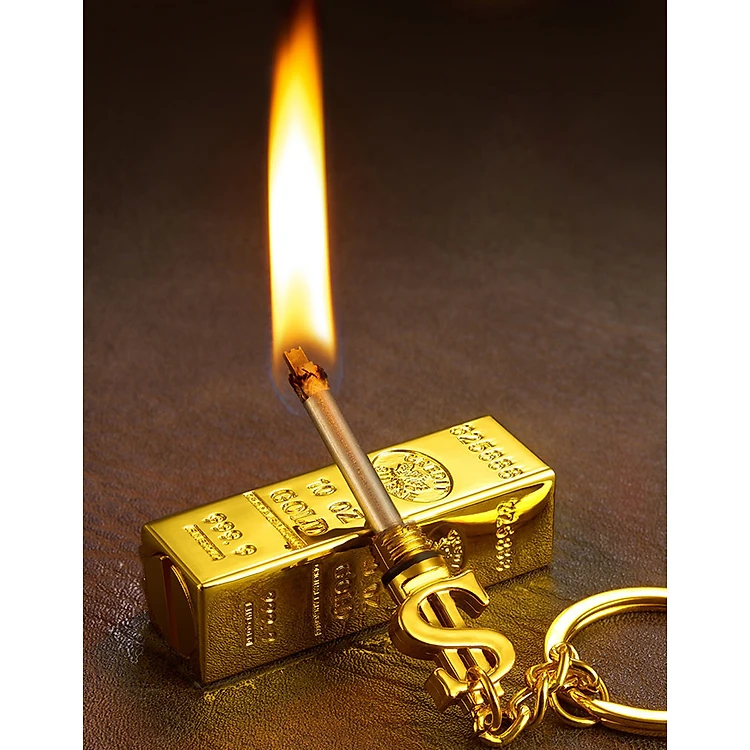 Vỏ Hột Quẹt Bật Lửa Diêm Xăng Kiêm Móc Treo Chìa Khóa Hình Thỏi Vàng Độc Lạ