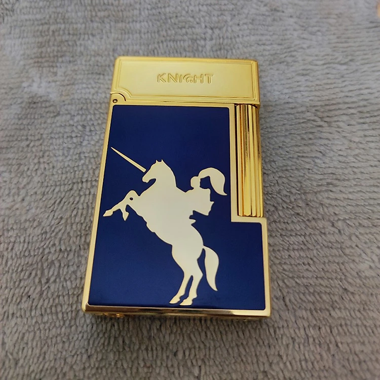 Vỏ Hột Quẹt Bật Lửa Gas Đá KNIGHT 2 Mộc Đáy Ốp Sơn Mài Xanh Họa Tiết Kỵ Sỹ La Mã Cực Đẹp