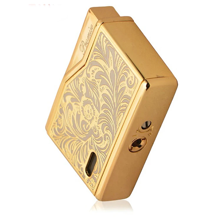 Vỏ Hột Quẹt Bật Lửa Gas Đá Promise BN215-A11 Thiết Kế Độc Lạ, Hoa Văn Cổ Sang Trọng Màu Vàng - Dùng Gas Đá Cao C