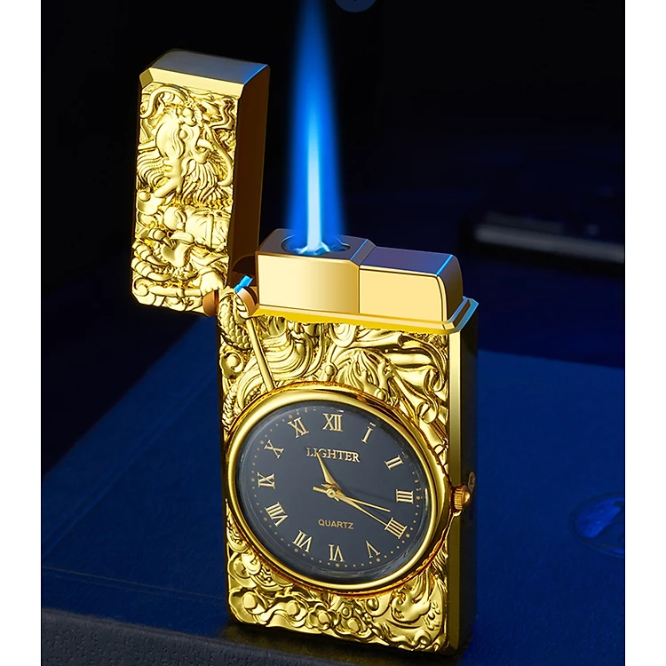 Vỏ Hột Quẹt Bật Lửa Gas HF602 Hình Quan Công Kiêm Đồng Hồ La Mã Cực Đẹp - Nhiều Màu