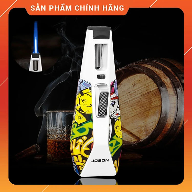 Vỏ Hột Quẹt Bật Lửa Gas Jobon ZB-193 Khò 1 Tia Mạnh Mẽ Có Khóa Rảnh Tay/An Toàn - Nhiều Màu