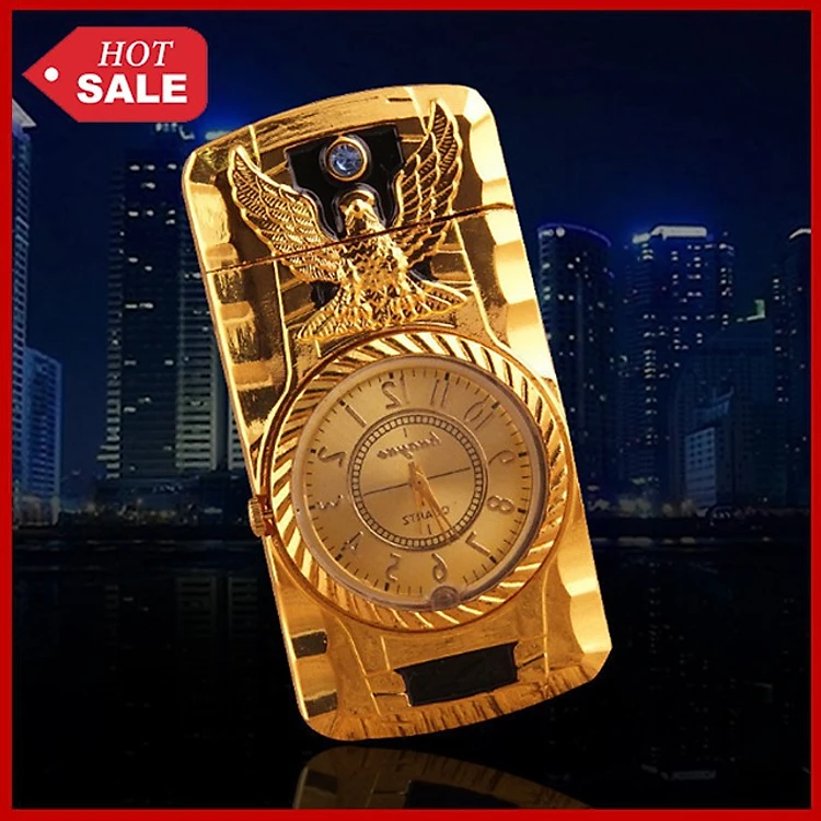 Vỏ Hột Quẹt Bật Lửa khò 1 tia kiêm đồng hồ họa tiết đại bàng có led rgb đẹp độc lạ - dùng gas cao cấp ( giao màu ngẫu nhiên )