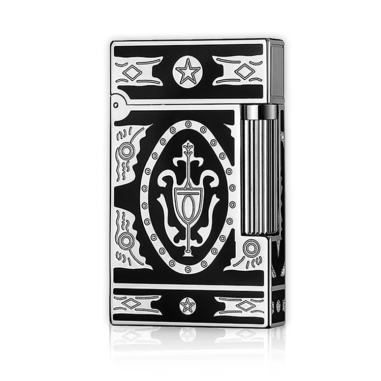 Vỏ Hột Quẹt Bật Lửa Upon D08T Họa Tiết Hoàng Gia Bạc Đen - Dùng Gas Đá Cao Cấp