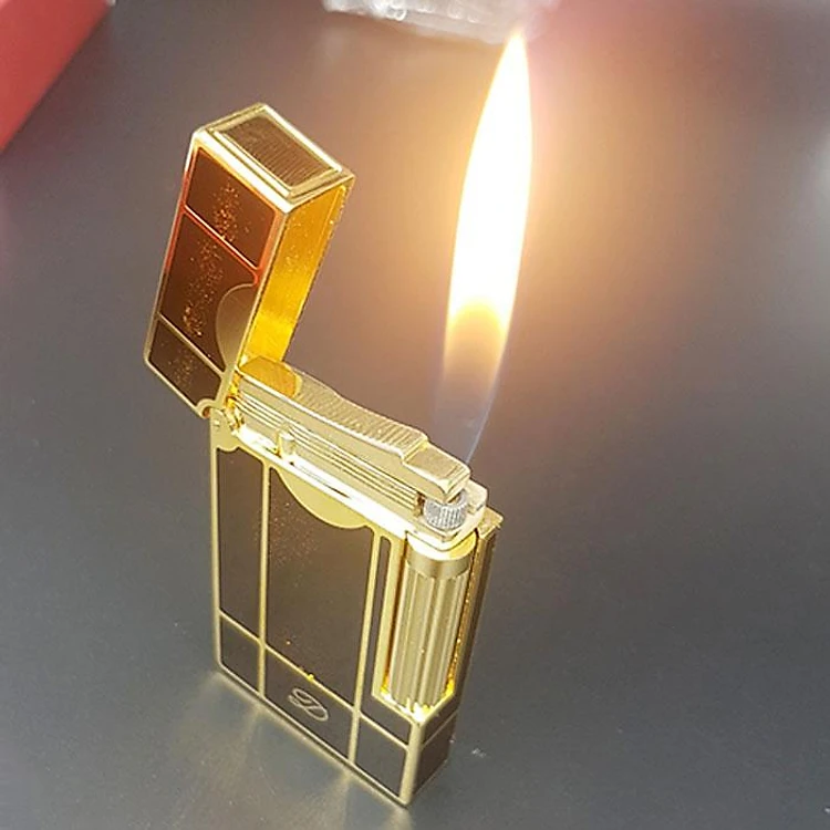 Vỏ Hột Quẹt Bật Lửa Ga Đá D120V Sơn Mài Đen Vàng Tuyết Sang Trọng - Dùng Gas Đá Cao Cấp