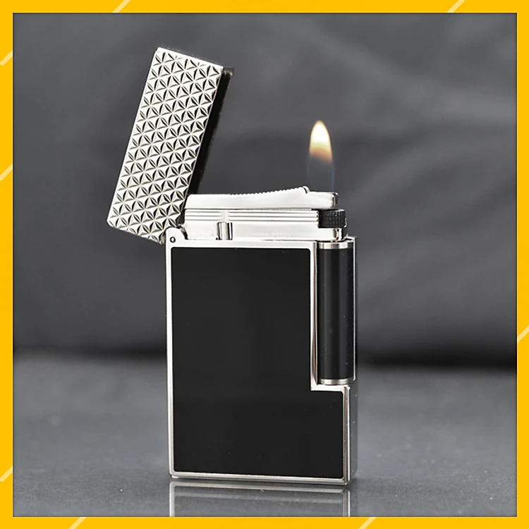 Vỏ Hột Quẹt Bật Lửa Upon D143T Sơn Mài Đen Họa Tiết Kim Cương - Dùng Gas Đá Cao Cấp