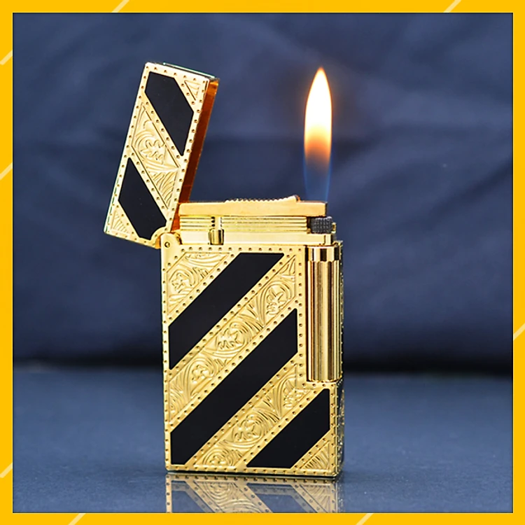 Vỏ Hột Quẹt Bật Lửa Upon D42V Họa Tiết Hoa Lá Sơn Mài Nền Đen Vàng Đối Nhau - Dùng Gas Đá Cao Cấp