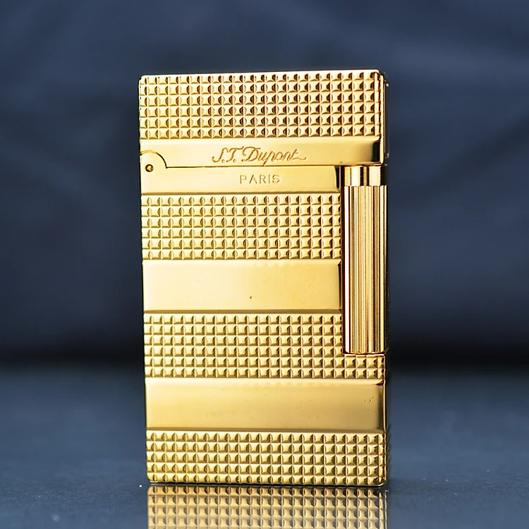 Vỏ Hột Quẹt Bật Lửa Upon D72V Sơn Mài Ánh Vàng Bóng Họa Tiết Ô Vuông Kẻ Ngang Cao Cấp