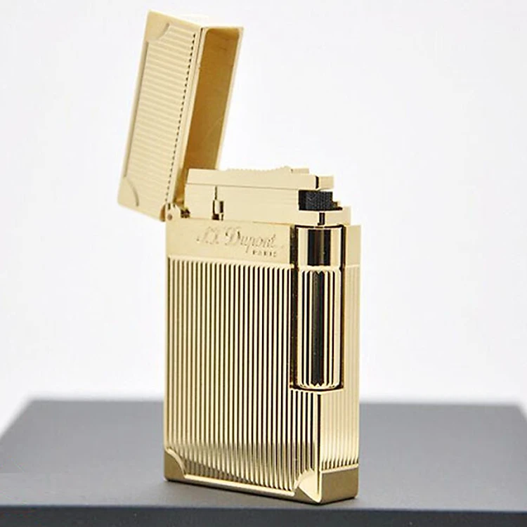 Vỏ Hột Quẹt Bật Lửa Upon D75H Họa Tiết Hình Kẻ Dọc Chặn Góc Hồng Vàng - Dùng Ga Đá Cao Cấp