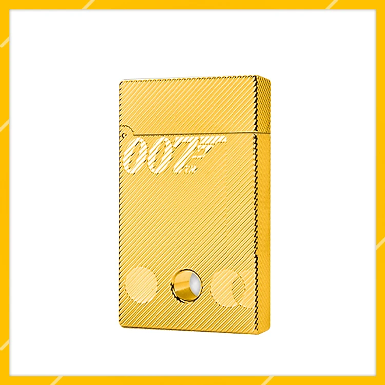 Vỏ Hột Quẹt Bật Lửa Upon Điệp Viên 007 Xọc Chéo DX15V Màu Vàng - Dùng Xăng Bấc Đá Cao Cấp