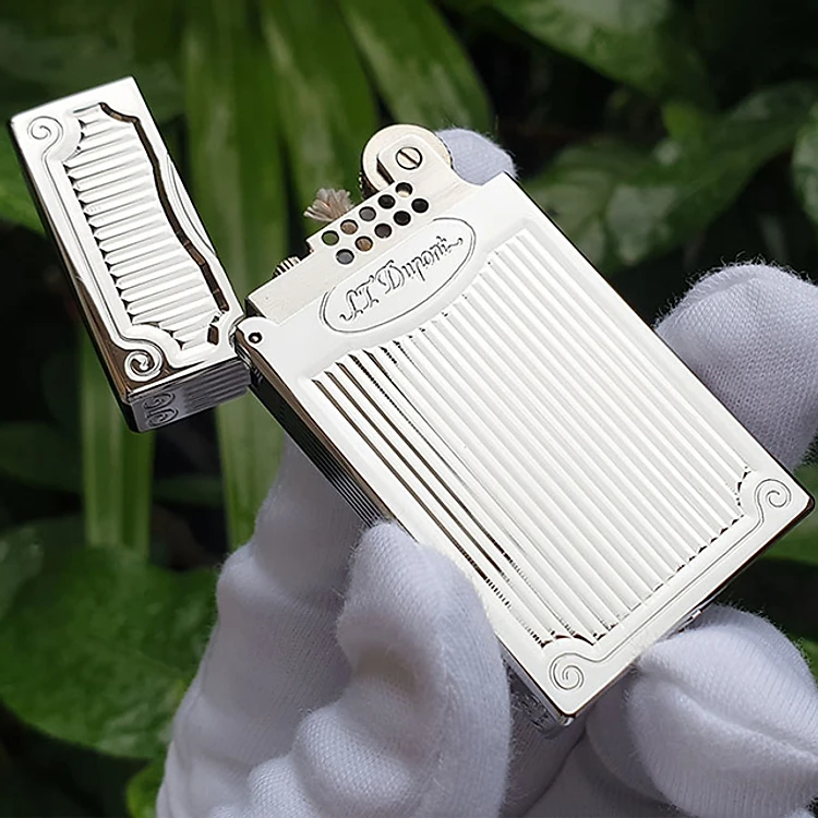 Vỏ Hột Quẹt Bật Lửa Upon Hoa Văn Kẻ Dọc DX04T Màu Bạc - Dùng Xăng Bấc Đá Cao Cấp