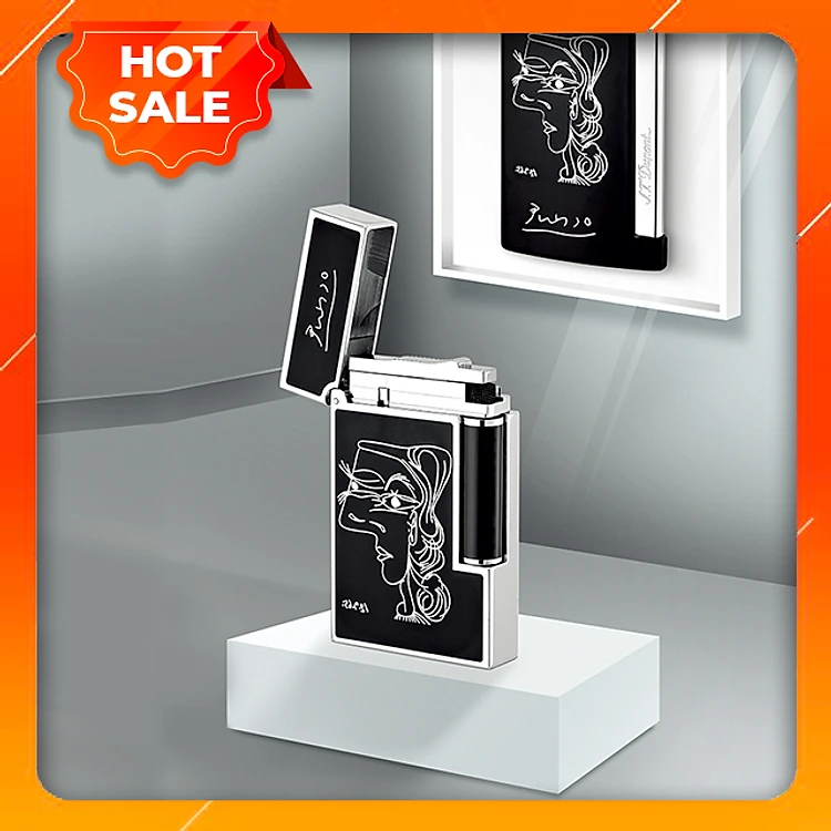 Vỏ Hột Quẹt Bật Lửa Upon Sơn Mài Chân Dung D193B Màu Bạc Đen - Dùng Gas Cao Cấp