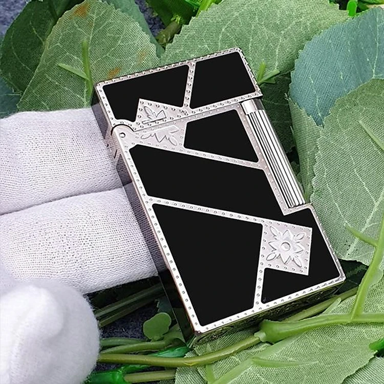 Vỏ Hột Quẹt Bật Lửa Upon Sơn Mài Ô Vuông Chéo D56T Màu Đen Viền Bạc - Dùng Gas Đá Cao Cấp