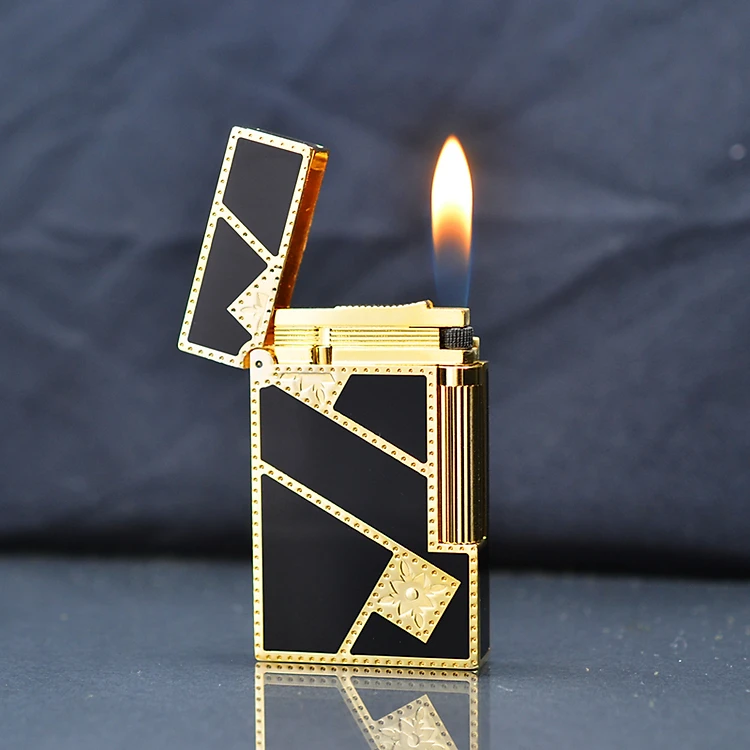 Vỏ Hột Quẹt Bật Lửa Upon Sơn Mài Ô Vuông Chéo D56V Màu Đen Viền Vàng - Dùng Gas Đá Cao Cấp