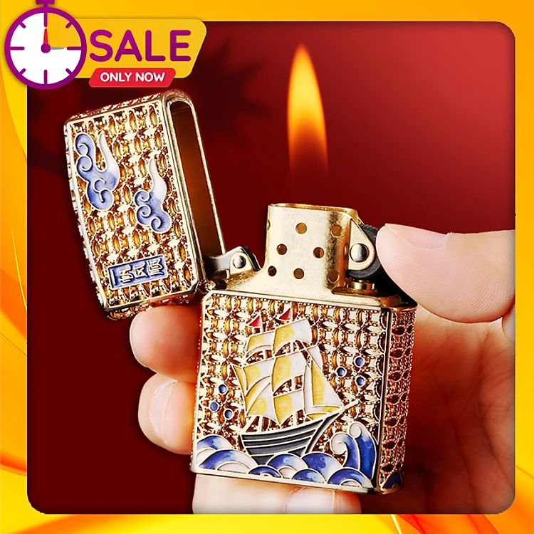 Vỏ Hột Quẹt Bật Lửa Xăng Chief CF1248J Thiết Kế Họa Tiết Thuyền Buồm Sơn Mài - Dùng Xăng Bấc Đá Cao Cấp