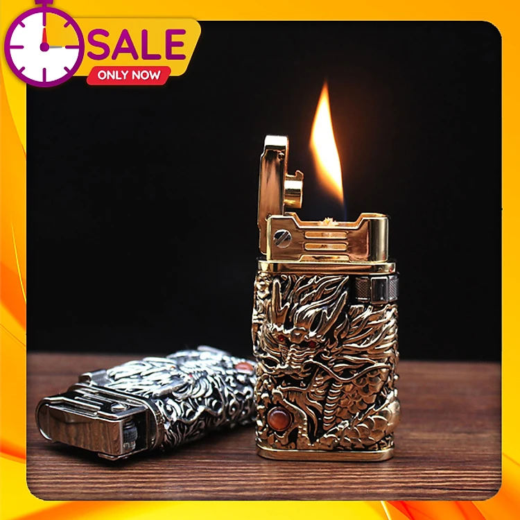 Vỏ Hột Quẹt Bật Lửa Xăng Đá Chief CF218R Đánh Đá Tự Động Hình Rồng Nổi Sang trọng - Dùng Xăng Bấc Đá Ippo Cao Cấp