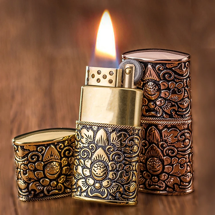 Vỏ Hột Quẹt Bật Lửa Xăng Đá Hoa Văn Kuboy K6200 Hoa Văn Cổ Điển