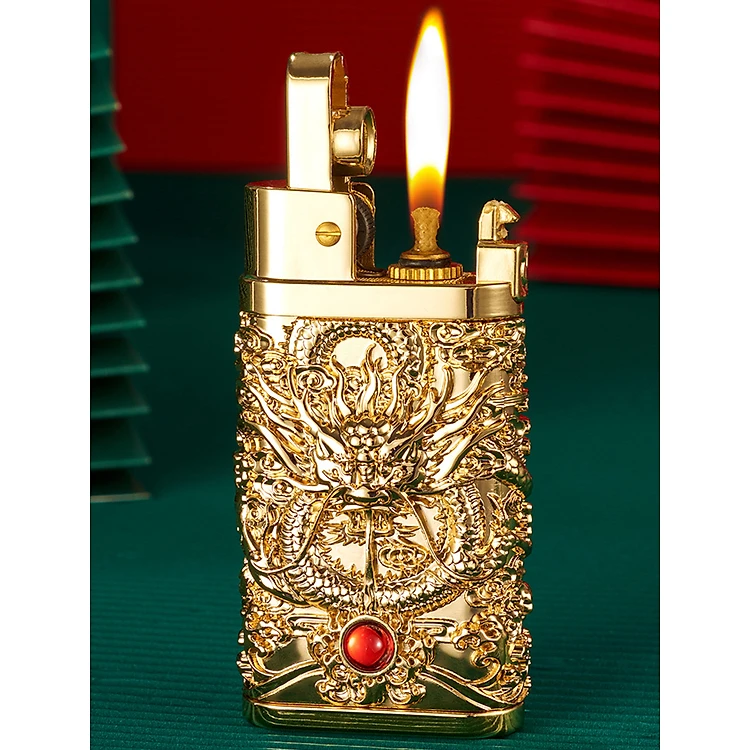Vỏ Hột Quẹt Bật Lửa Xăng Đá Yubang YB03 Hình Rồng Cuộn 4 Mặt Nhả Ngọc Cực Đẹp