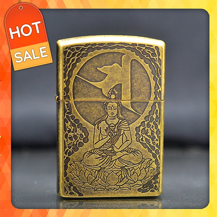 Vỏ Hột Quẹt Bật Lửa Xăng Đá Zorro Z91235 Họa Tiết Phật May Mắn sang trọng - Dùng Xăng Bấc Đá