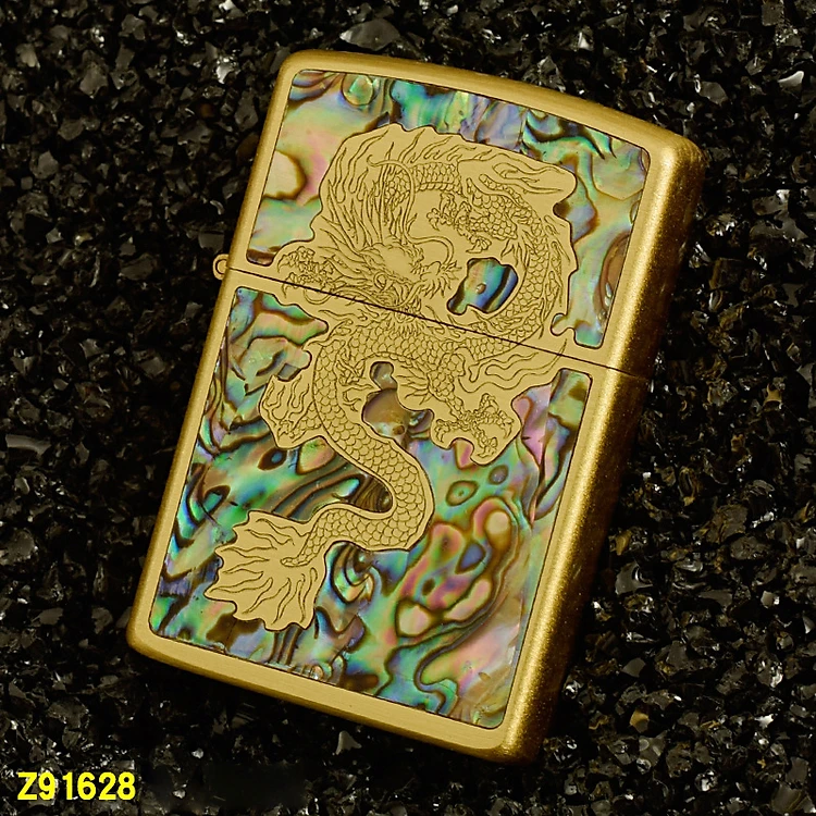 Vỏ Hột Quẹt Bật Lửa Xăng Đá Zorro Z91628 Khảm Trai Họa Tiết Hình Rồng Đẹp Độc Lạ