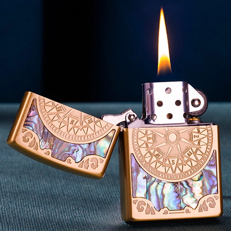 Vỏ Hột Quẹt Bật Lửa Xăng Đá Zorro Z91751 Họa Tiết Khảm Trai Hình La Bàn - Dùng Xăng Bấc Đá Cao Cấp