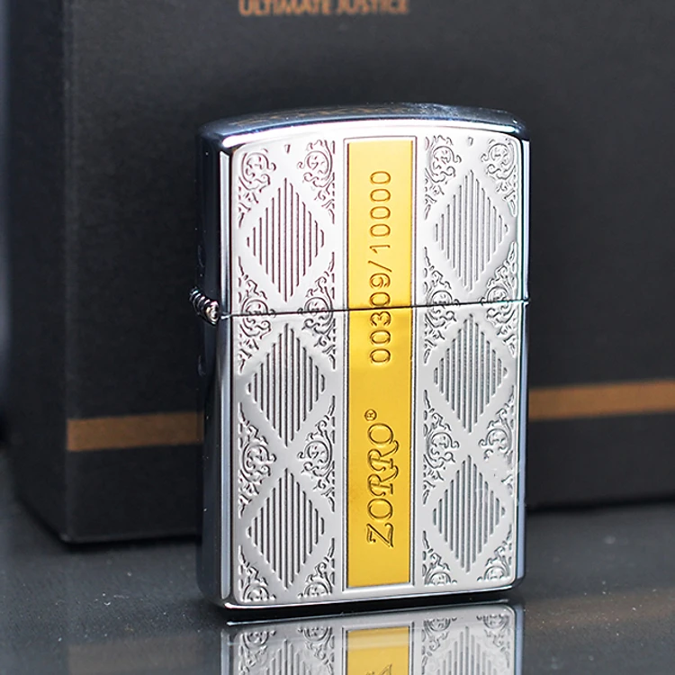 Vỏ Hột Quẹt Bật Lửa Xăng Đá Zorro Z92013 Họa Tiết Hình Thoi In Logo sang trọng - Dùng Xăng Bấc Đá Cao Cấp
