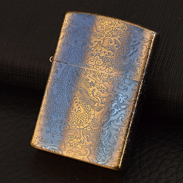 Vỏ Hột Quẹt Bật Lửa Xăng Đá Zorro Z92020B Họa Tiết Hoa Văn Rồng- Dùng Xăng Bấc Đá Cao Cấp