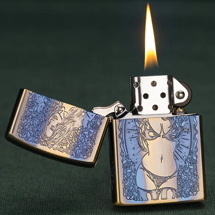 Vỏ Hột Quẹt Bật Lửa Xăng Đá Zorro Z92024 Họa Tiết Cô Gái - Dùng Xăng Bấc Đá Cao Cấp