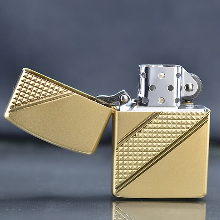 Vỏ Hột Quẹt Bật Lửa xăng đá Zorron Z92006A họa tiết chéo màu vàng