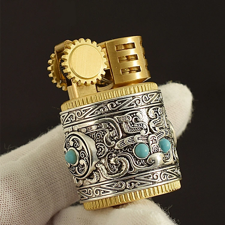 Vỏ Hột Quẹt Bật Lửa Xăng Mini Chief CF-212 Thiết Kế Họa Tiết Cổ Đẹp Độc Lạ - Dùng Xăng Bấc Đá Cao Cấp