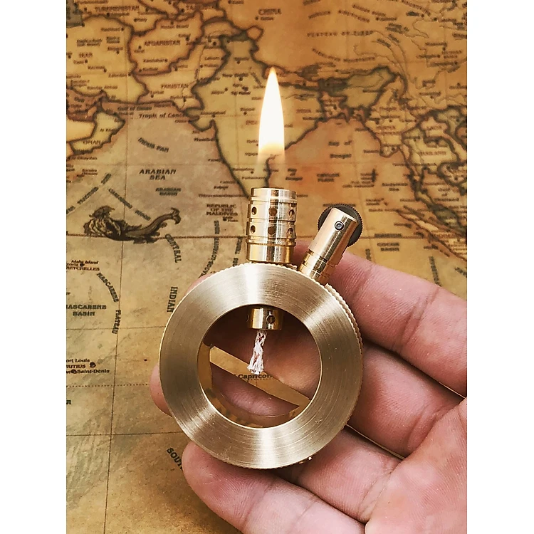 Vỏ Hột Quẹt Bật Lửa Xăng TC09 Thủ Công Làm Bằng Đồng Nguyên Khối Đánh Lửa Retro Màu Vàng Dùng Xăng Bấc Đá Cao Cấp