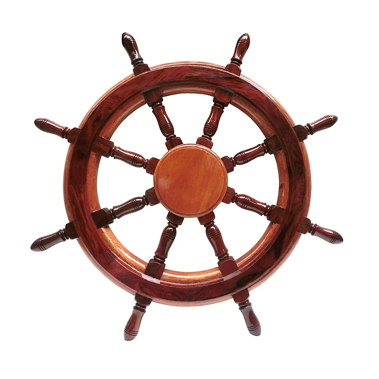 Mô hình bánh lái tàu gỗ trang trí treo tường - Vô lăng tàu gỗ trang trí Ø60cm - Gỗ căm xe tự nhiên