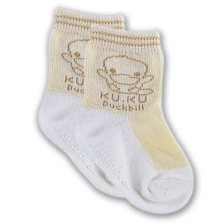 Vớ Len Cho Bé Kuku KU2807 - Vàng được trang trí hình ảnh Kuku đáng yêu trên cổ vớ thật sinh động. Vớ phối hợp màu trắng và vàng đẹp mắt, nổi bật.