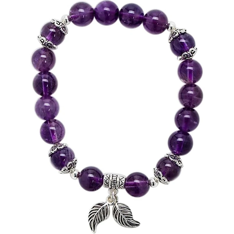 Vòng Đá Thạch Anh Tím Mix Charm Lá Bạc 925 8mm Ngọc Quý Gemstones VT158