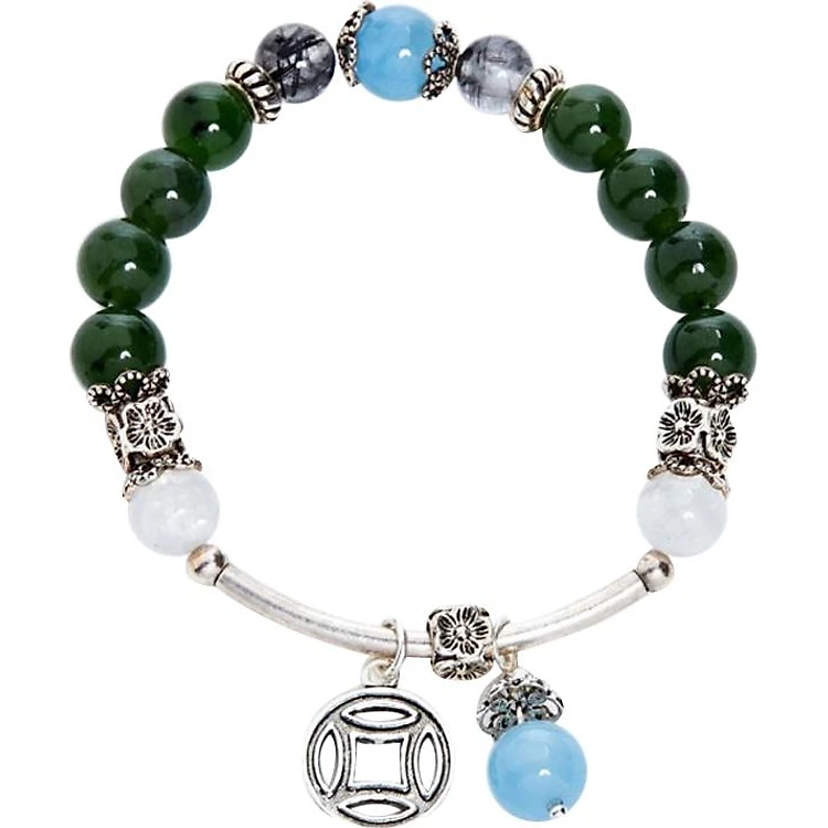 Vòng Mala Ngọc Bích Charm Bạc Ngọc Quý Gemstones VT20