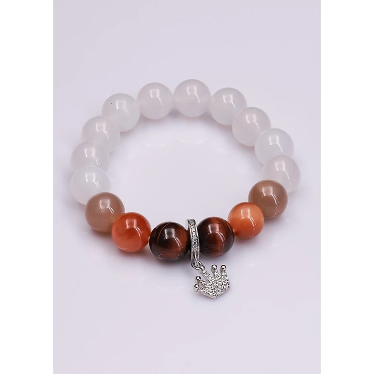Vòng tay nữ MN trắng 10ly mix Mắt Hổ và Charm rơi Anqlo
